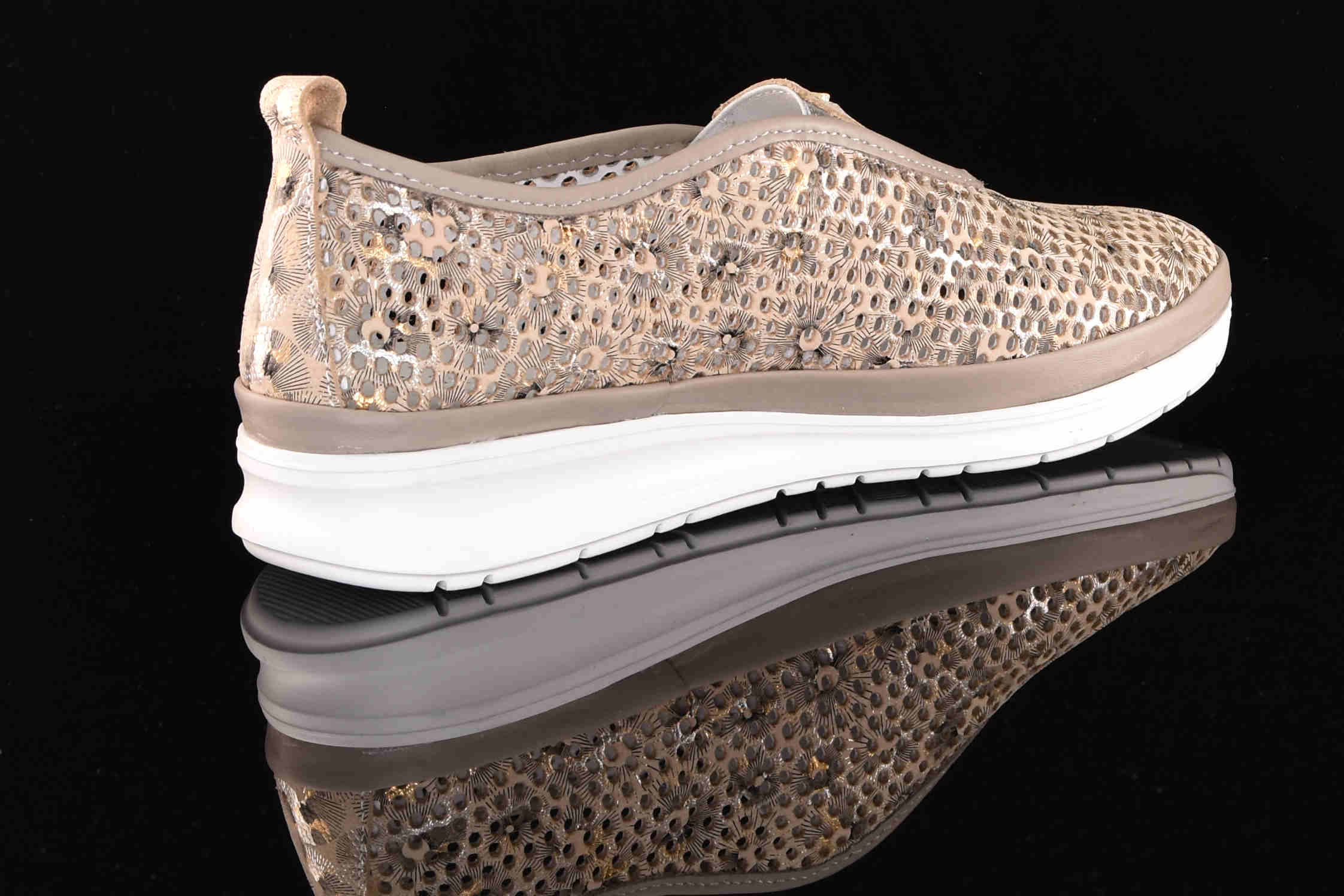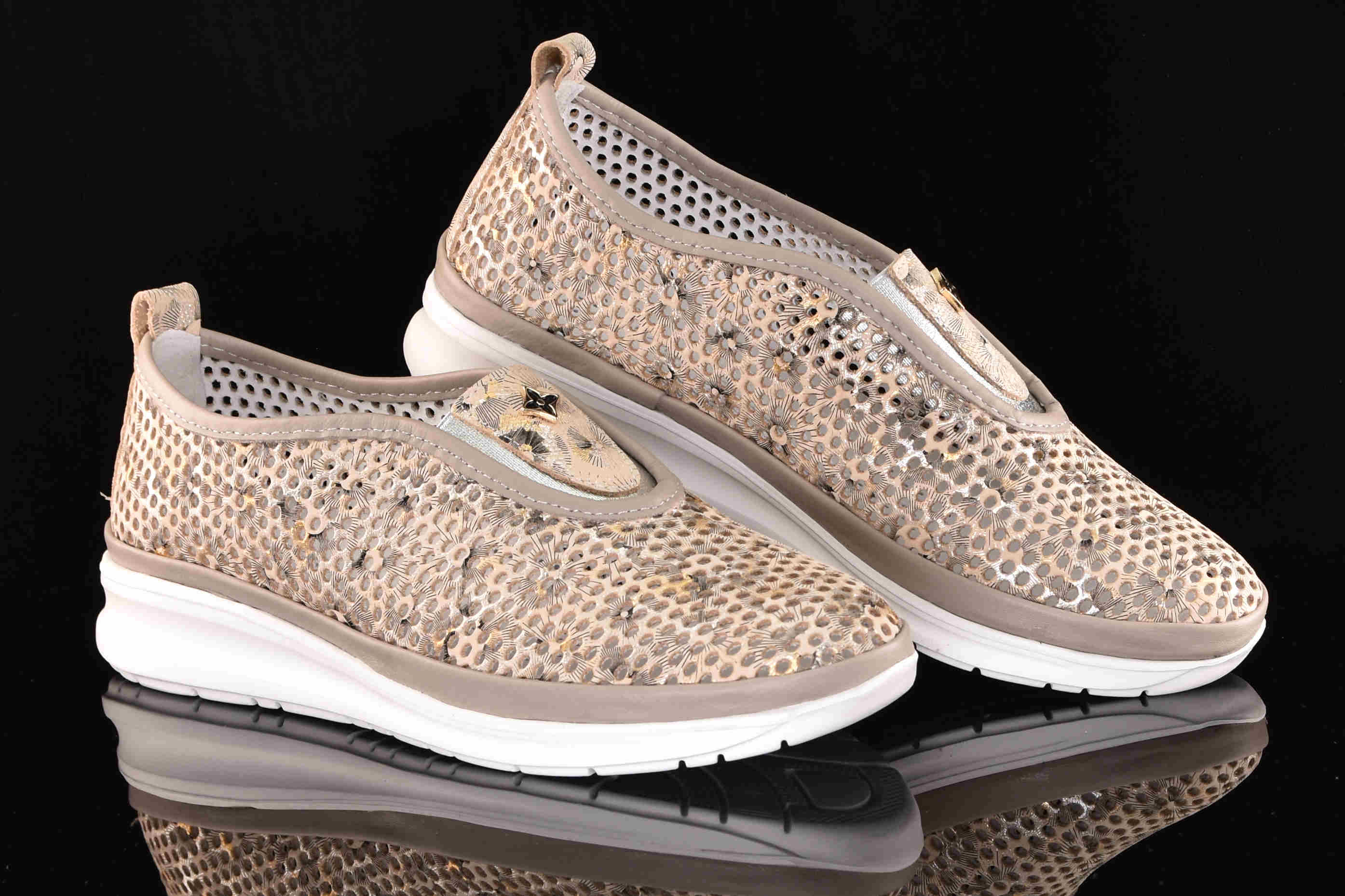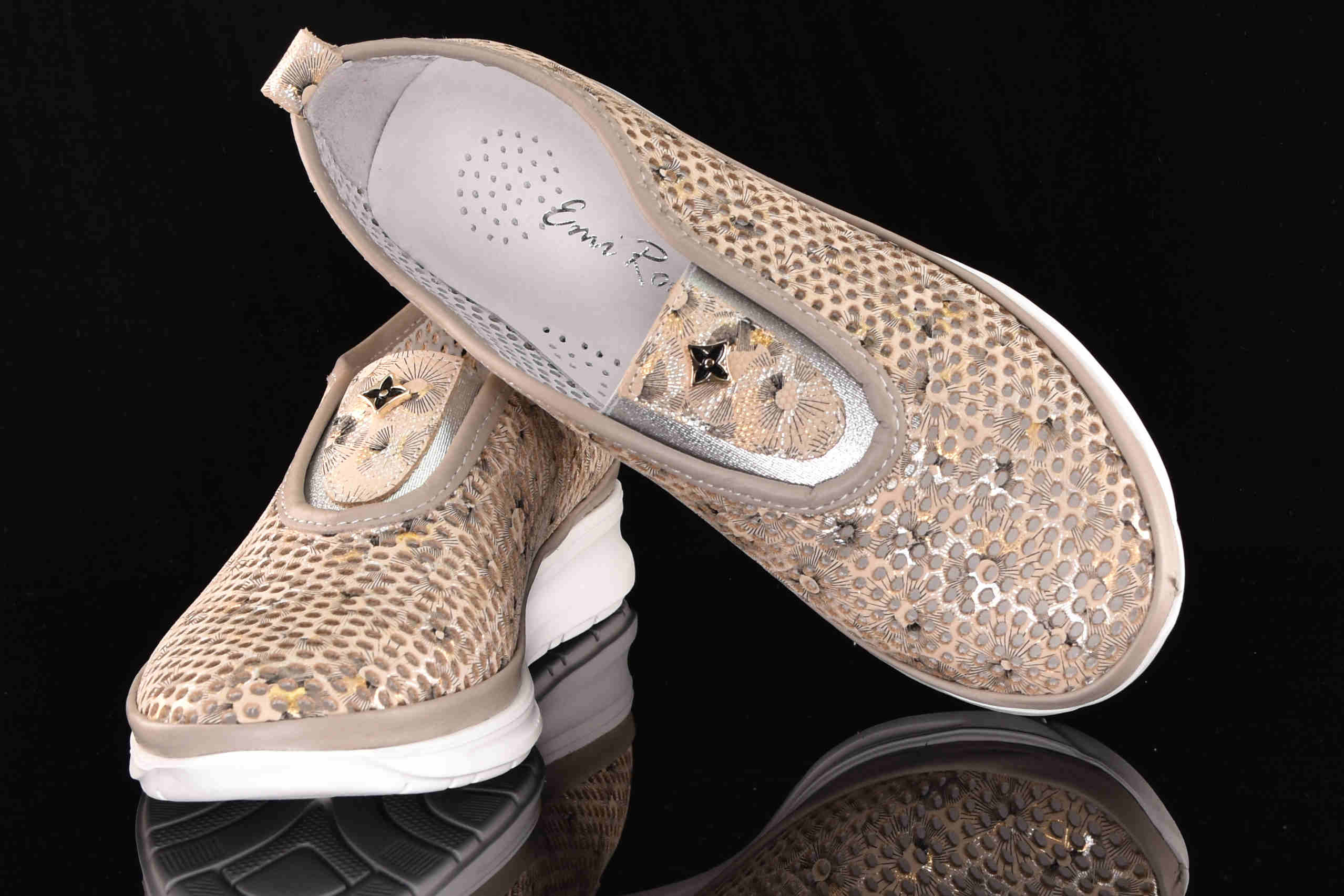 Damskie Ażurowe Komfortowe Półbuty Emi Romani 128.820-1/81-08 Złoty/Beż