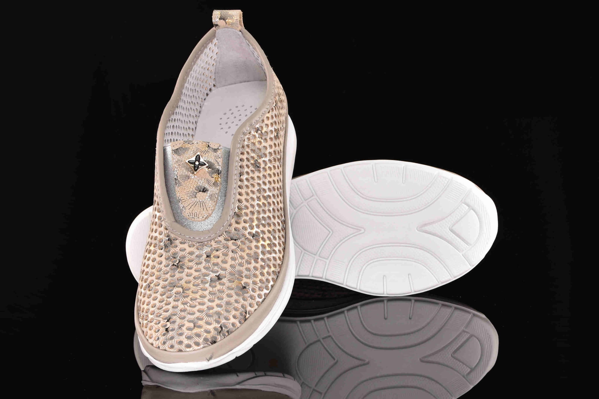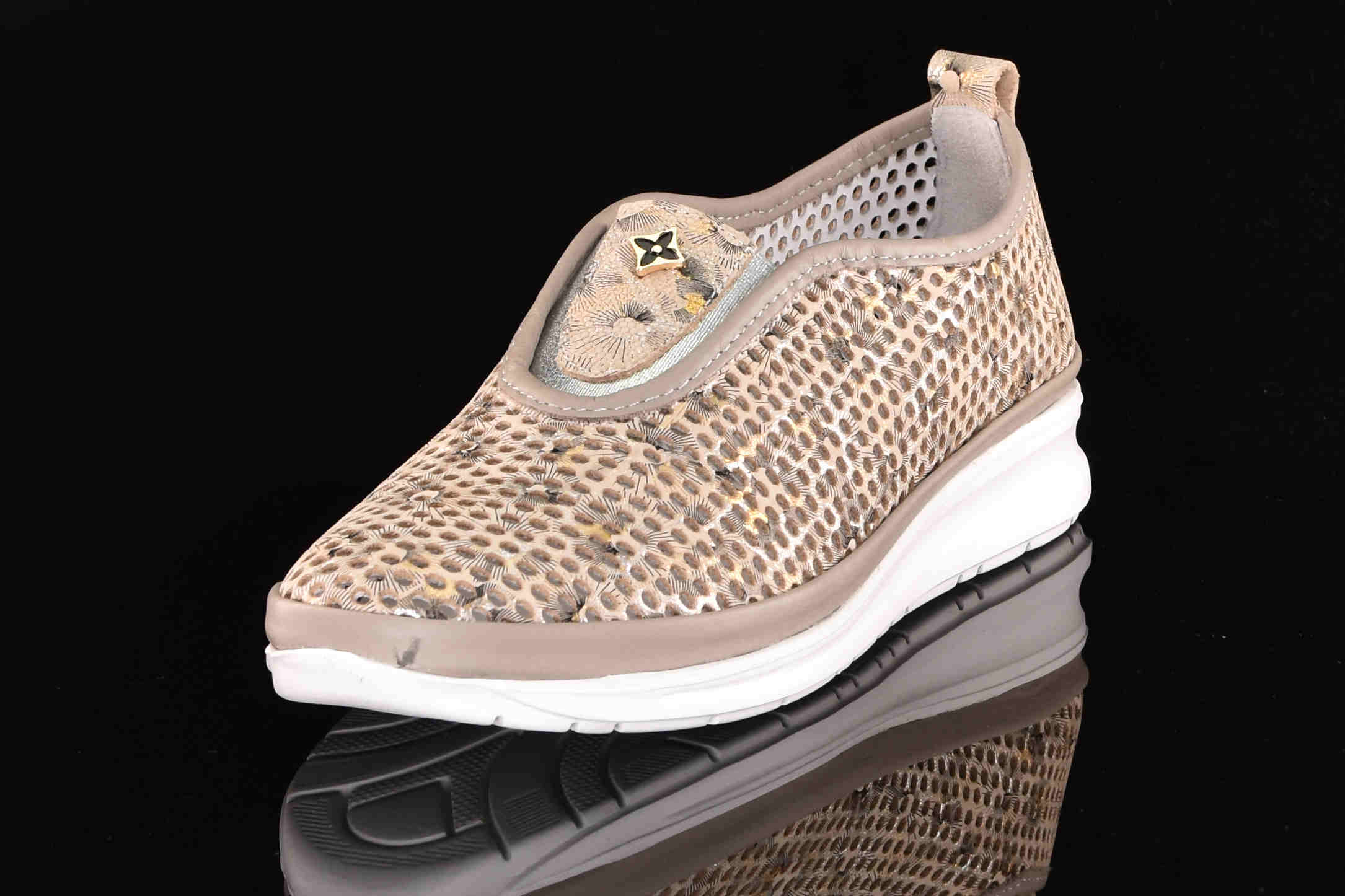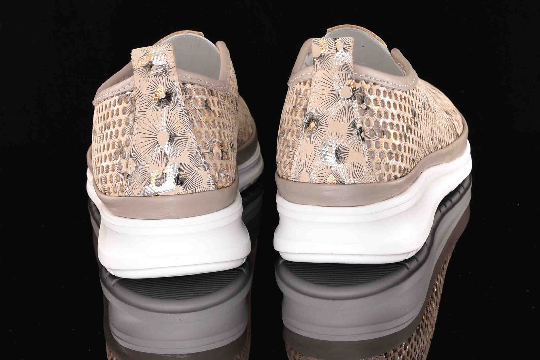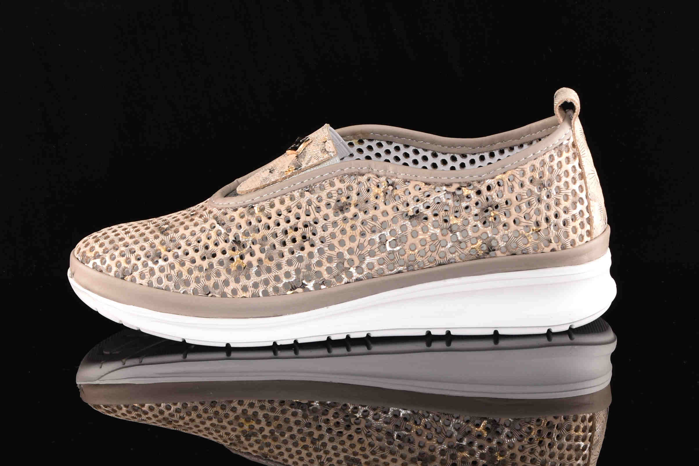 Damskie Ażurowe Komfortowe Półbuty Emi Romani 128.820-1/81-08 Złoty/Beż