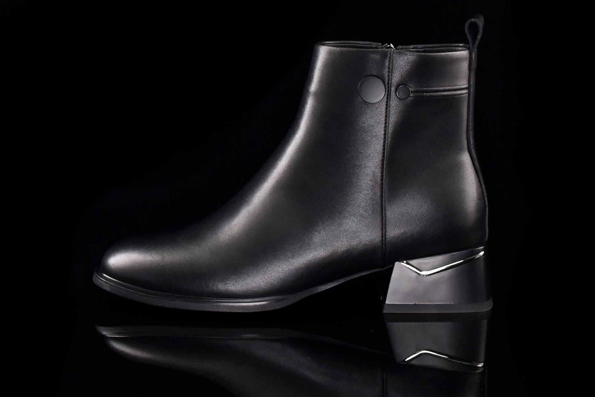 - Zapięcie: w postaci bocznego zamka błyskawicznego ułatwia szybkie zakładanie i zdejmowanie butów.