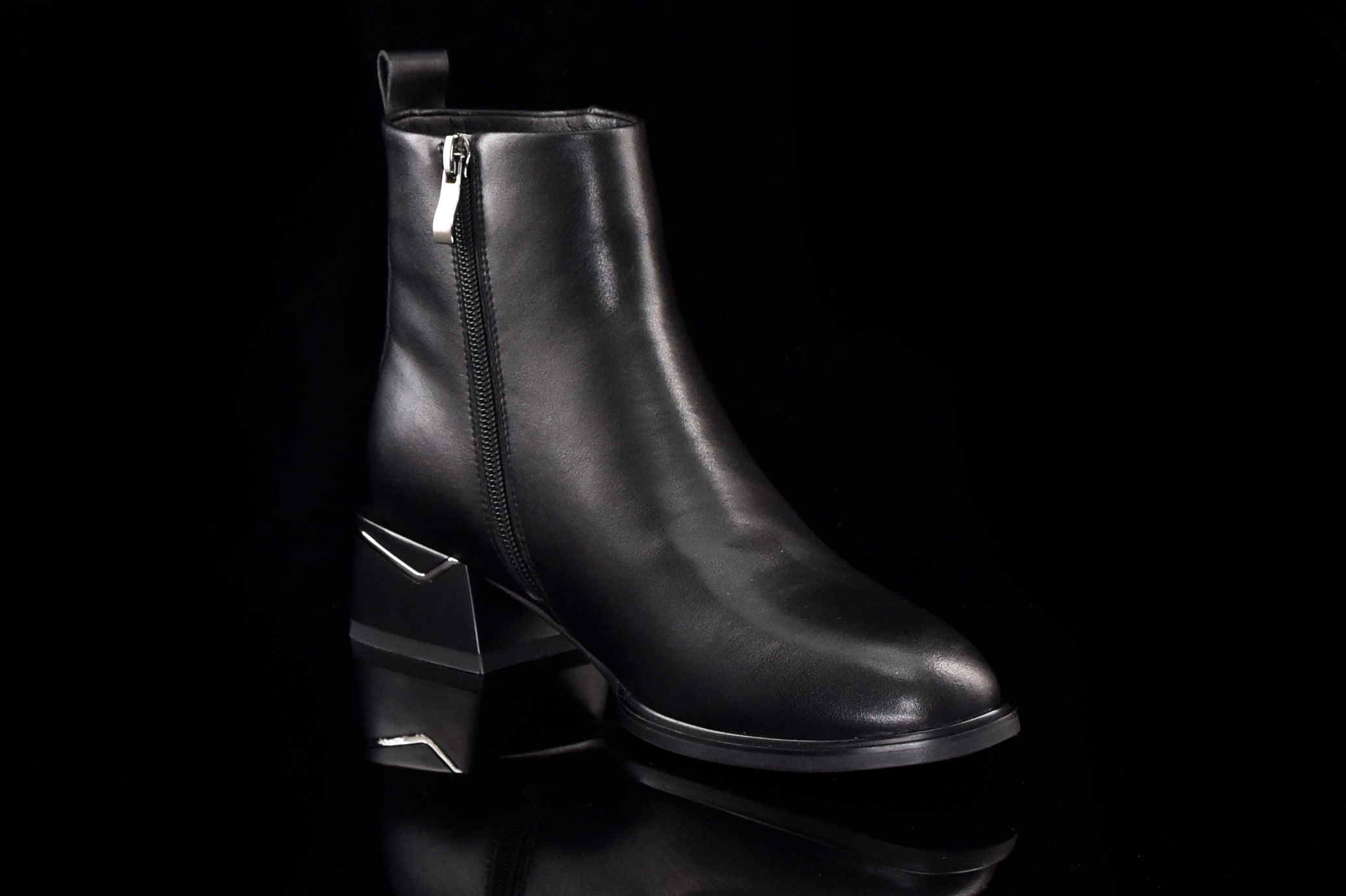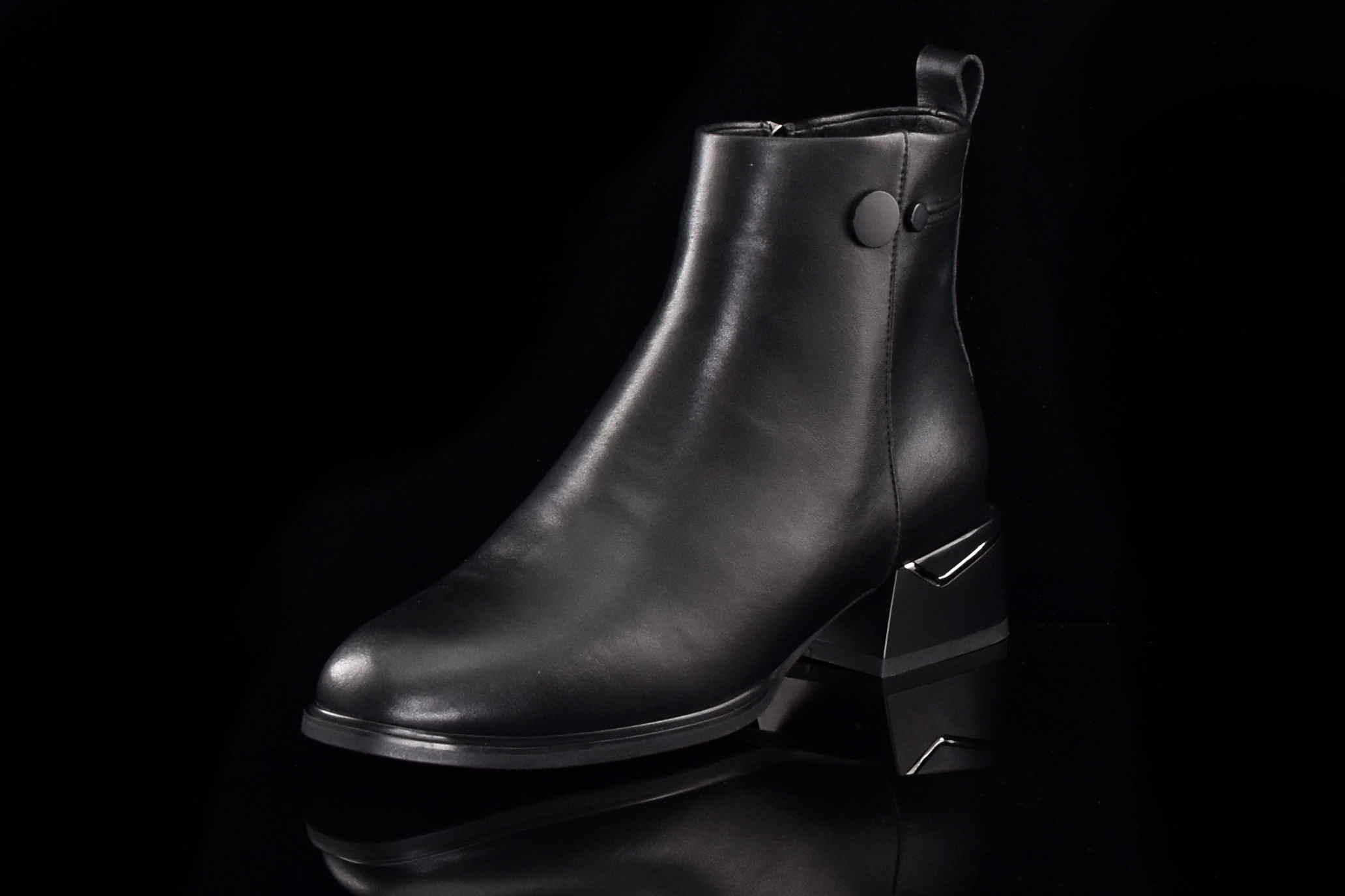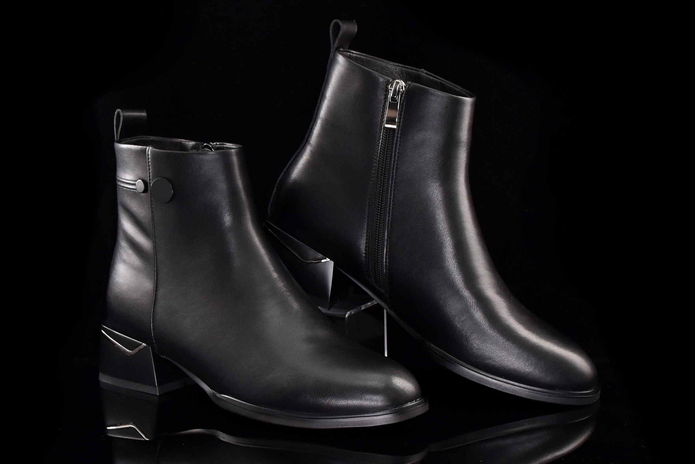 Eleganckie skórzane botki damskie z suwakiem.