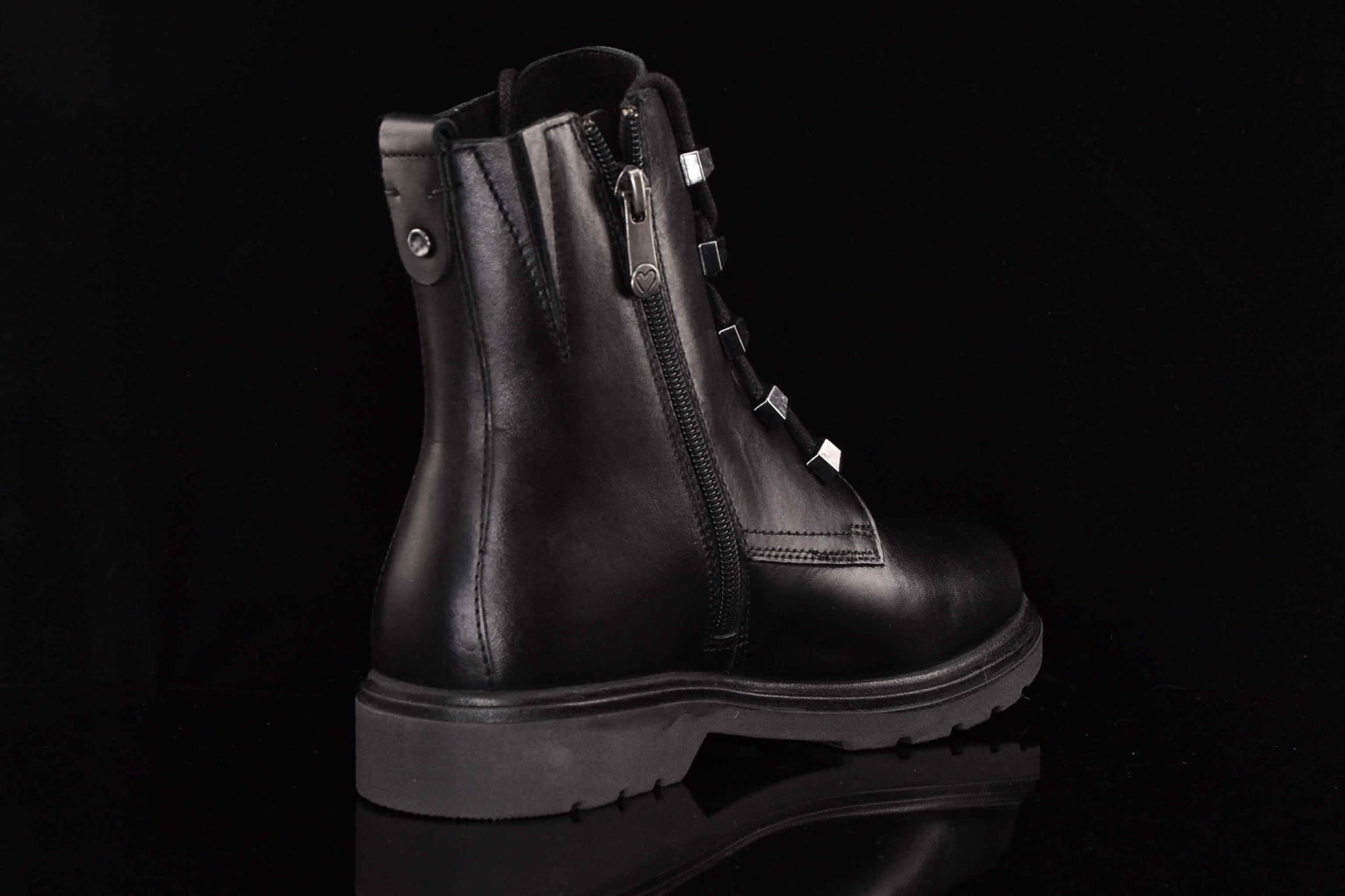 - Zapięcie: Zamek błyskawiczny po wewnętrznej stronie, ułatwiający zakładanie i zdejmowanie, dodatkowo klasyczne sznurowanie , urozmaicone ozdobnymi oczkami na sznurowadło, dla lepszego dopasowania.