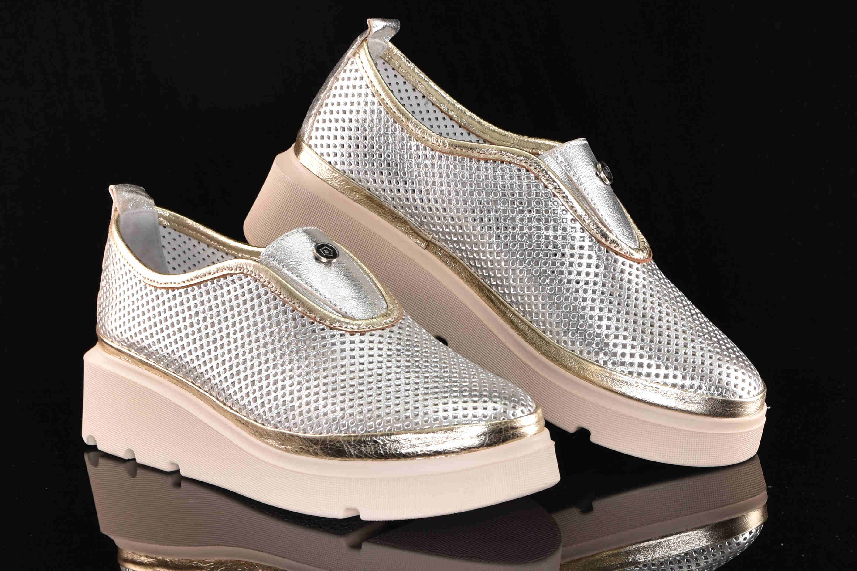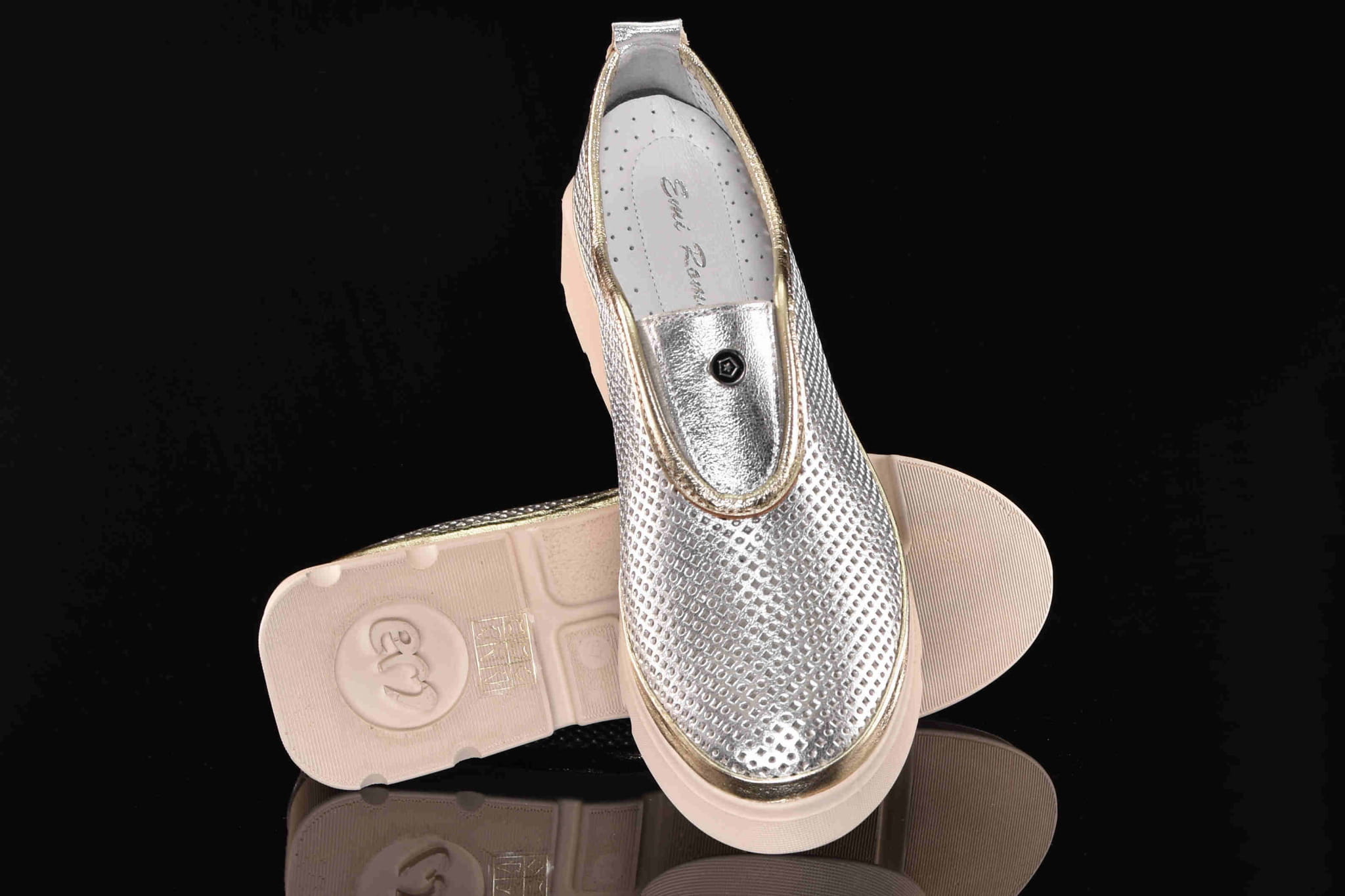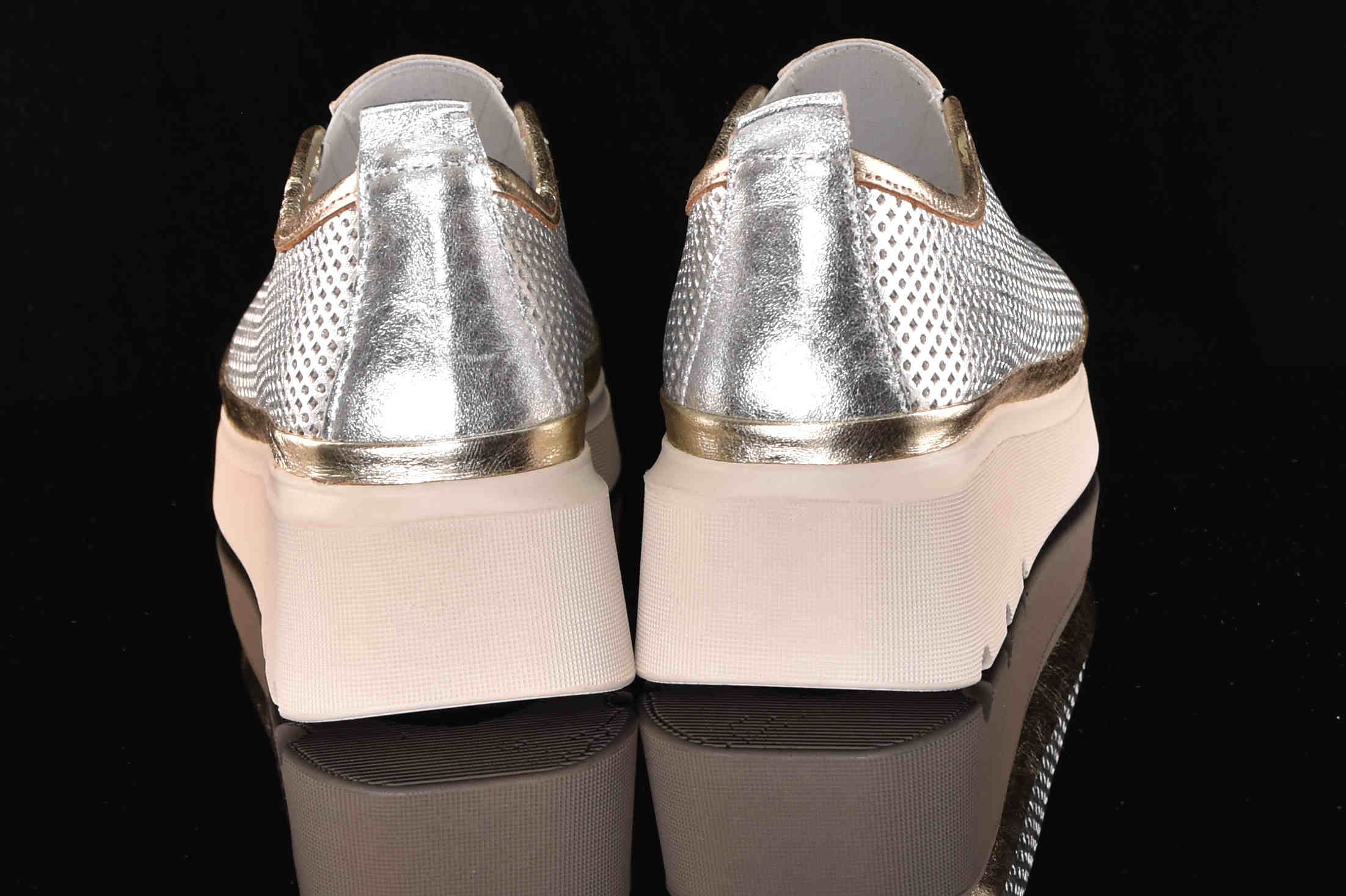 Damskie Skórzane Ażurowe na Platformie Półbuty EMI ROMANI 773.1903/118 Srebrny