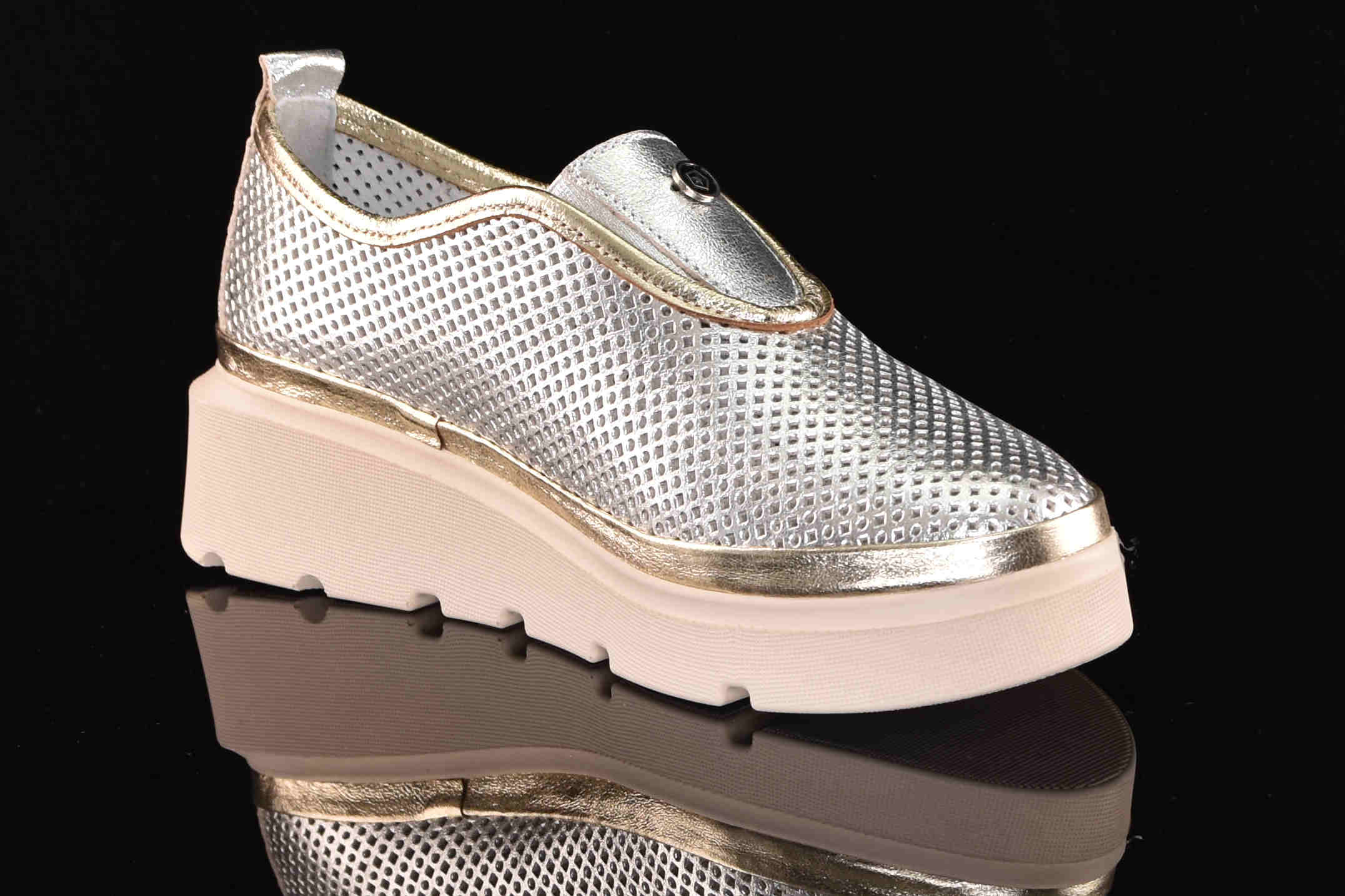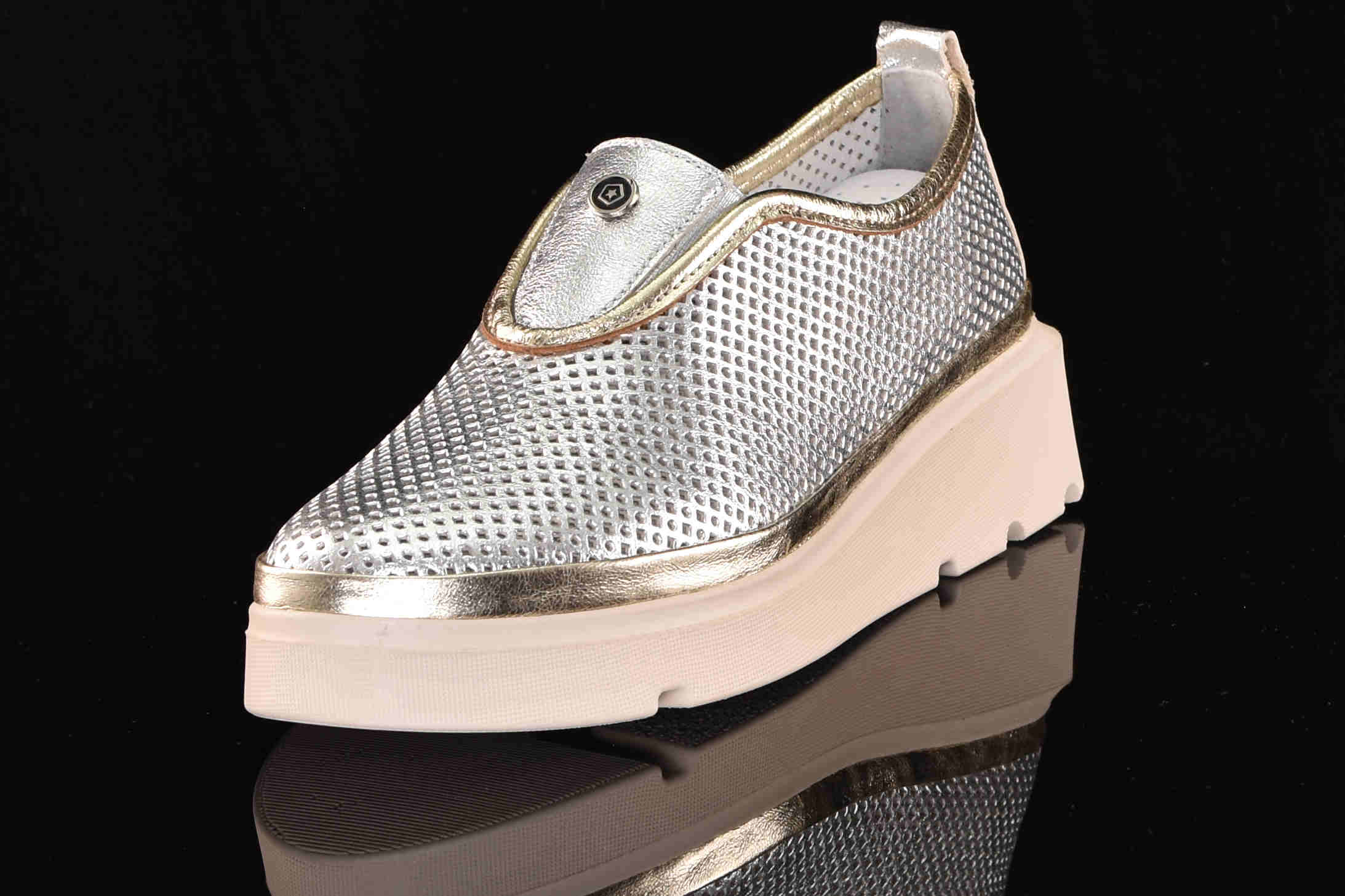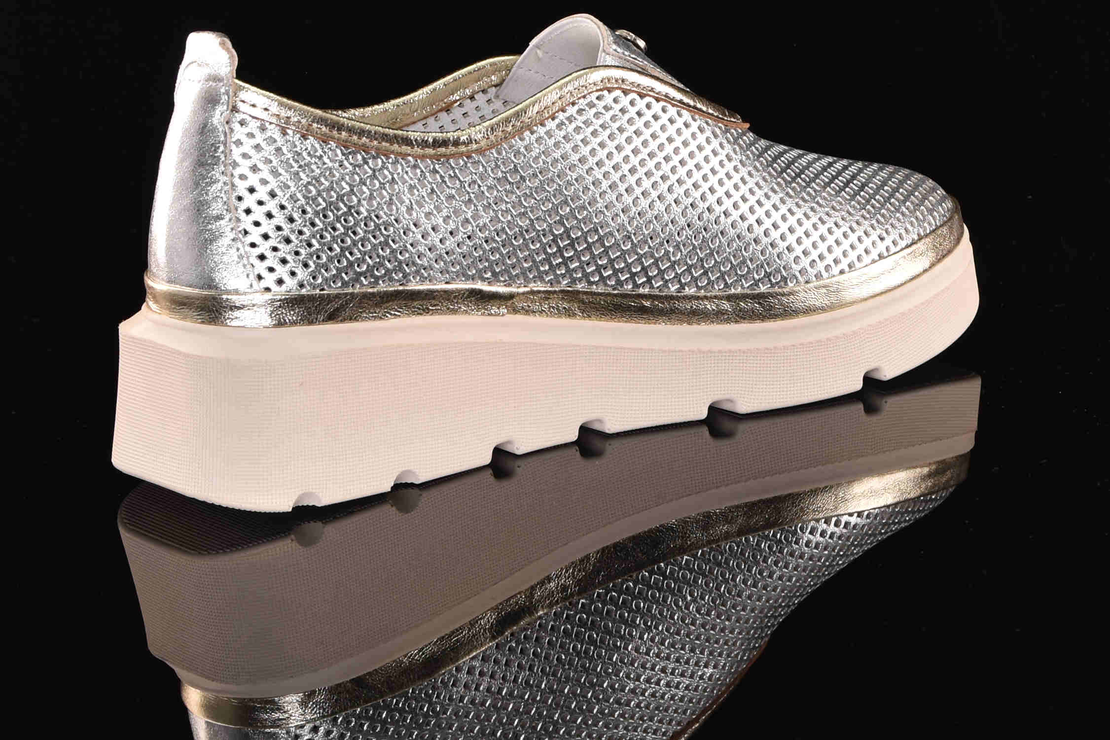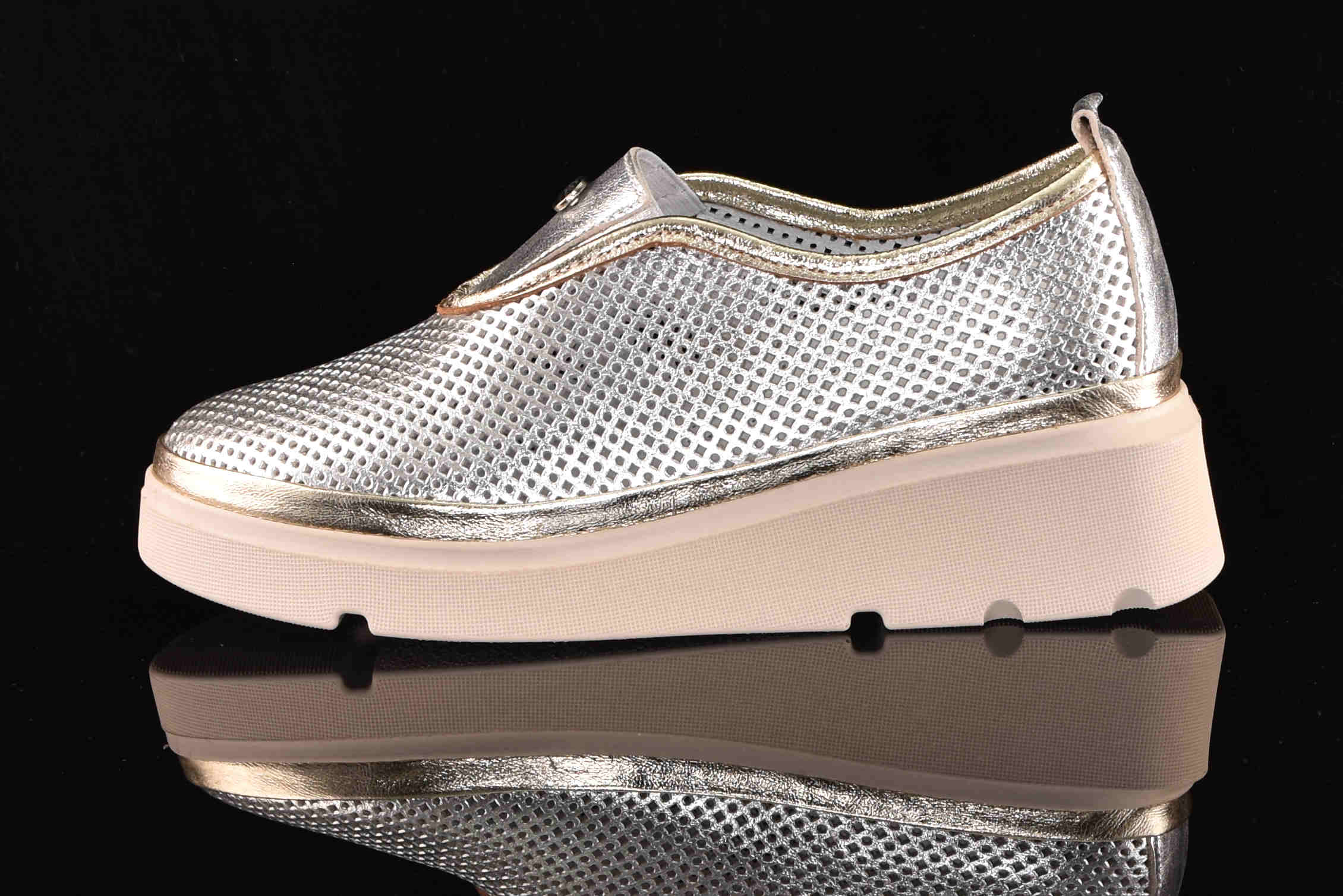 Damskie Skórzane Ażurowe na Platformie Półbuty EMI ROMANI 773.1903/118 Srebrny