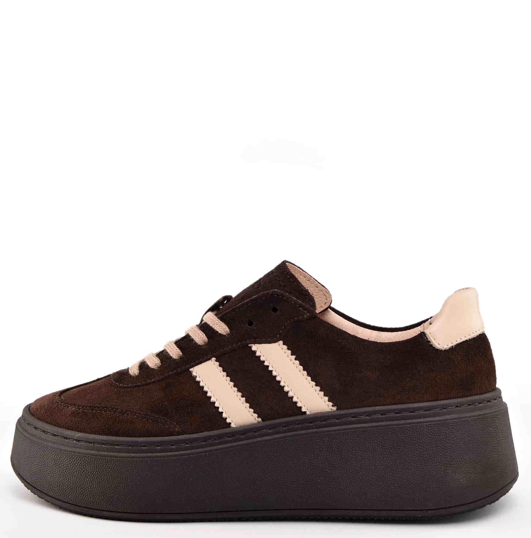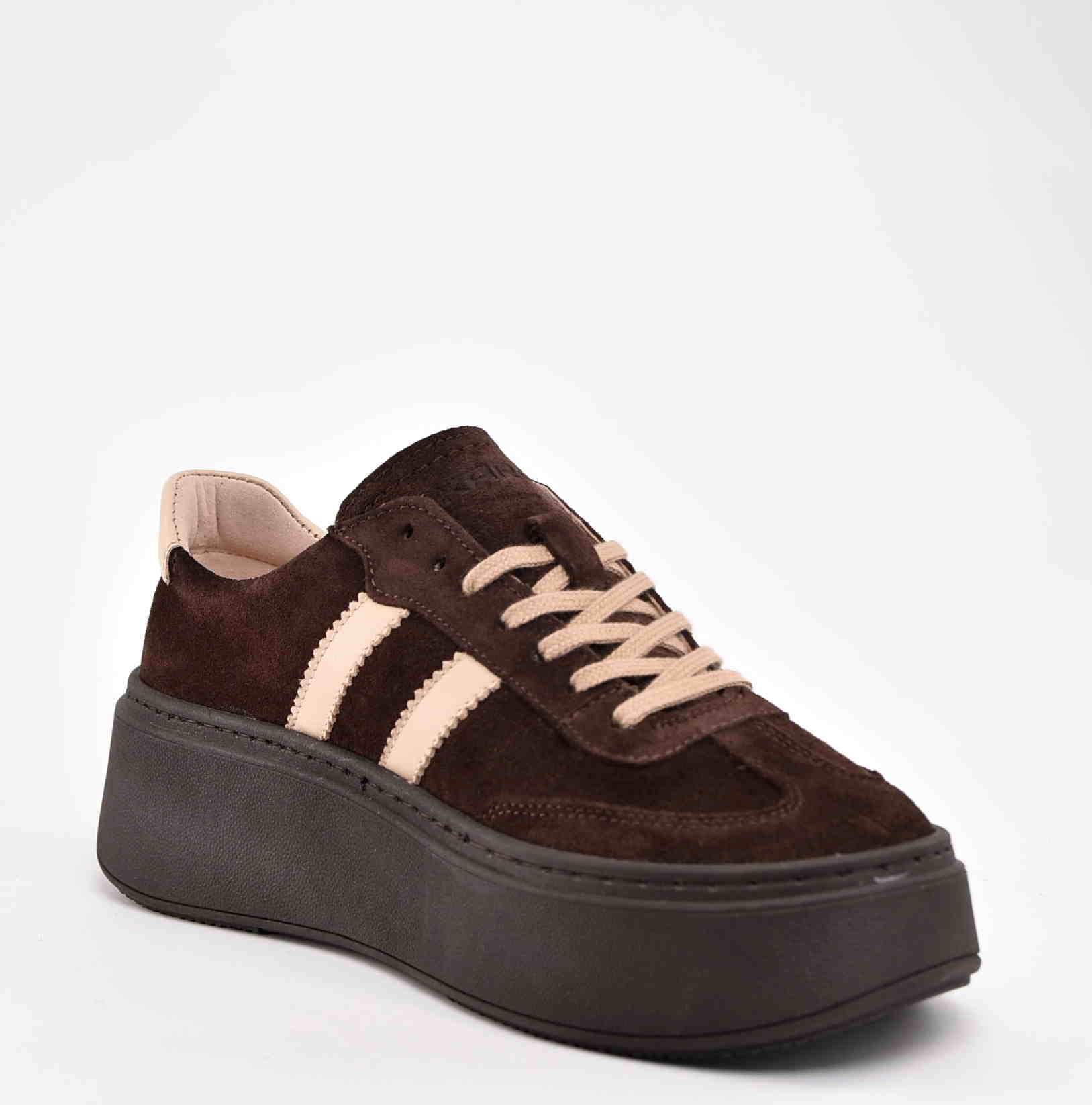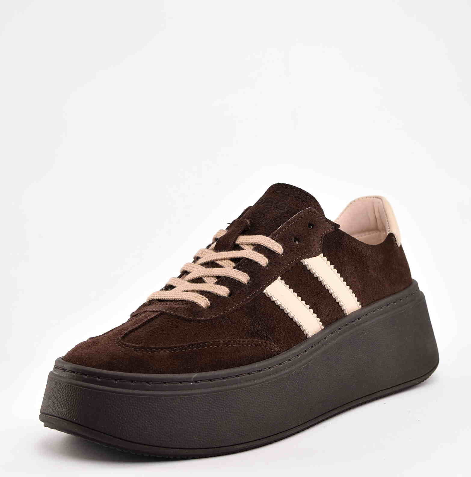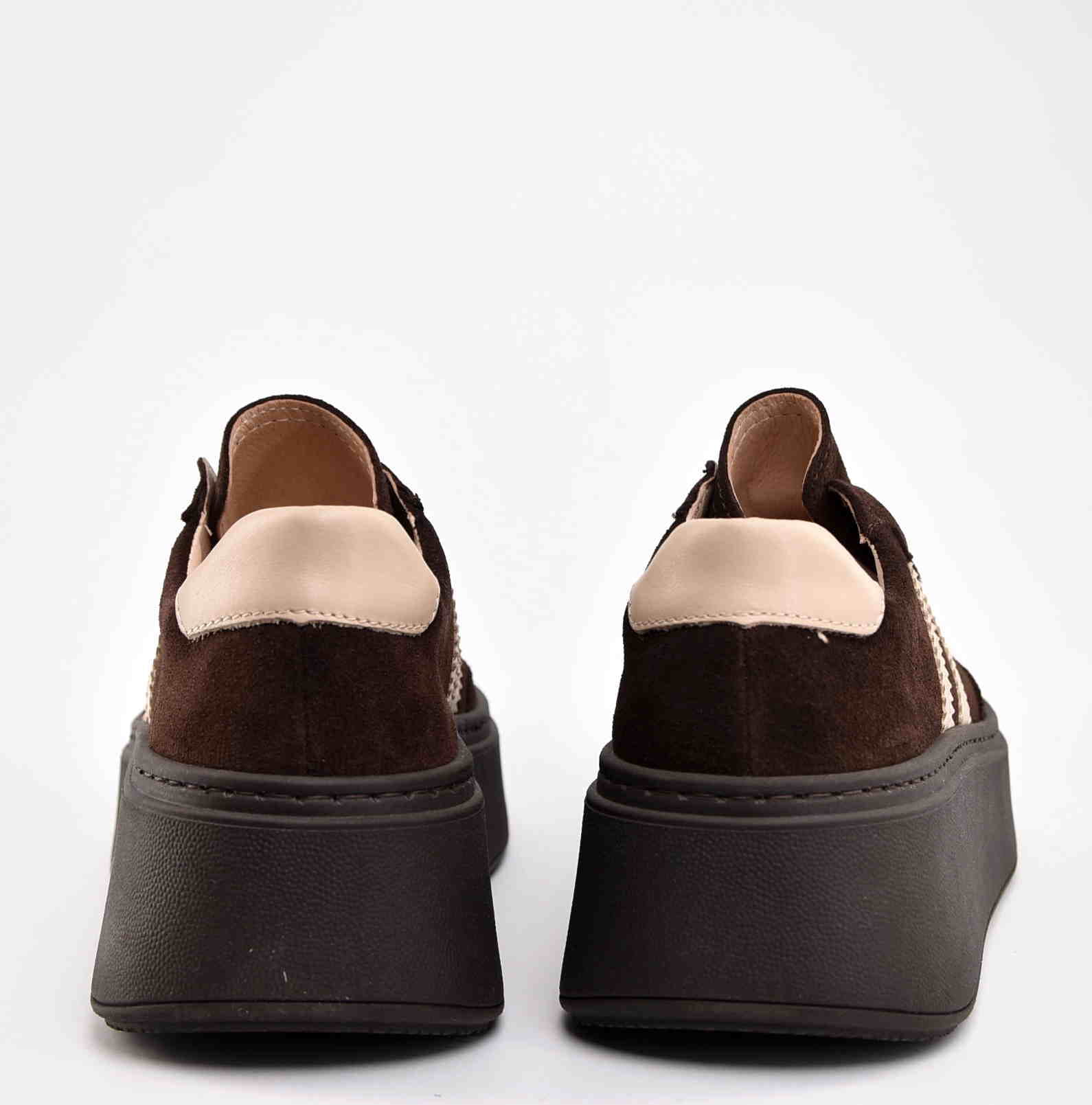 Damskie Sneakersy Na Grubej Podeszwie Naturalna Skóra Zamszowa KARO W-20674-1597-F Brąz
