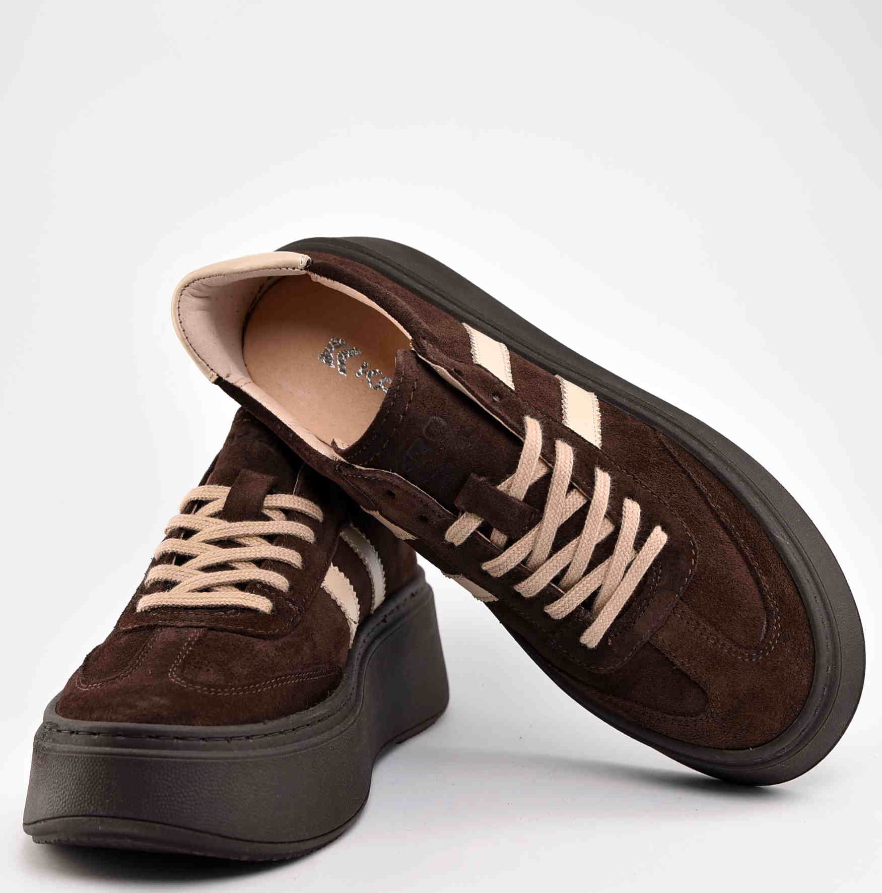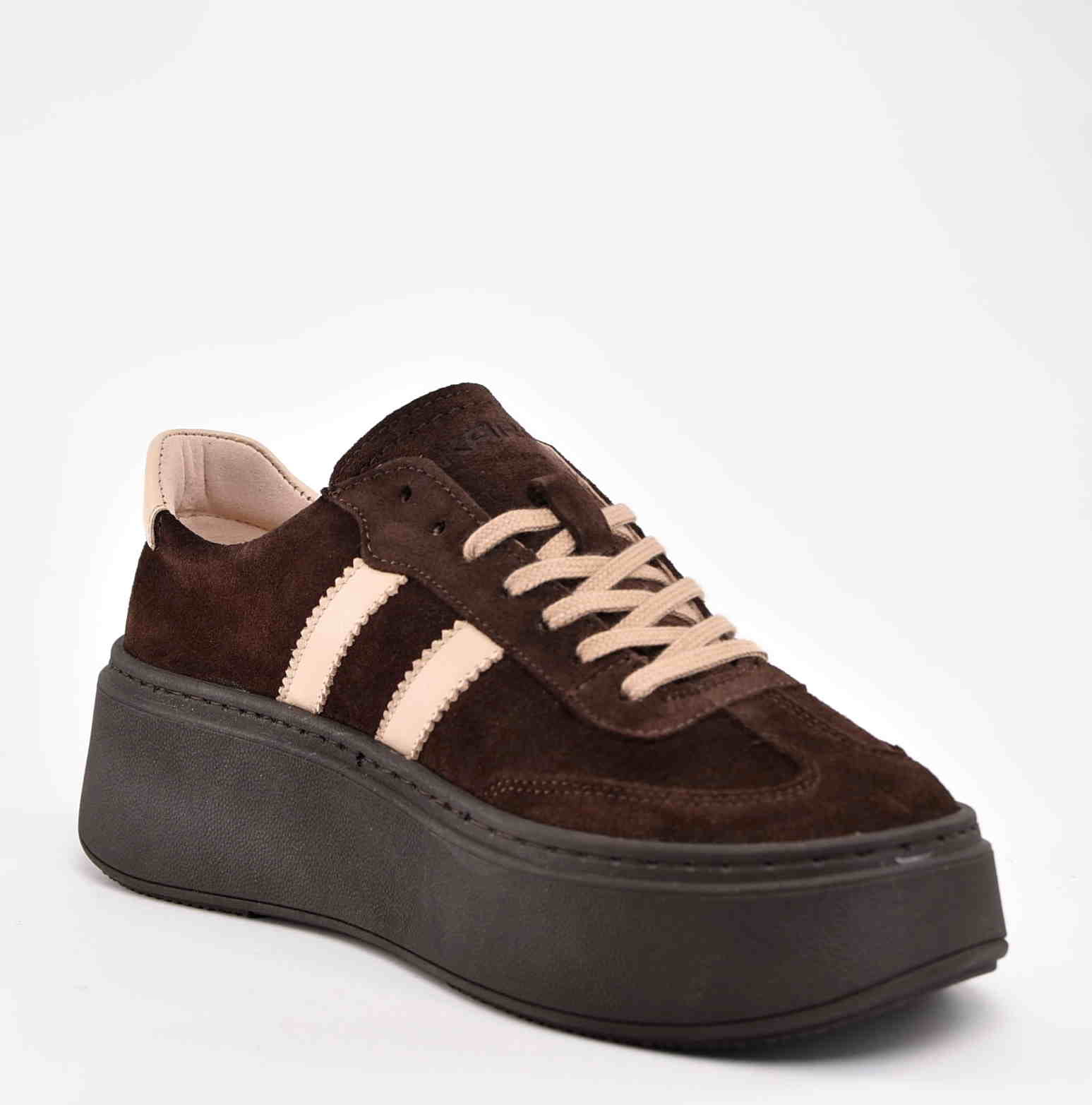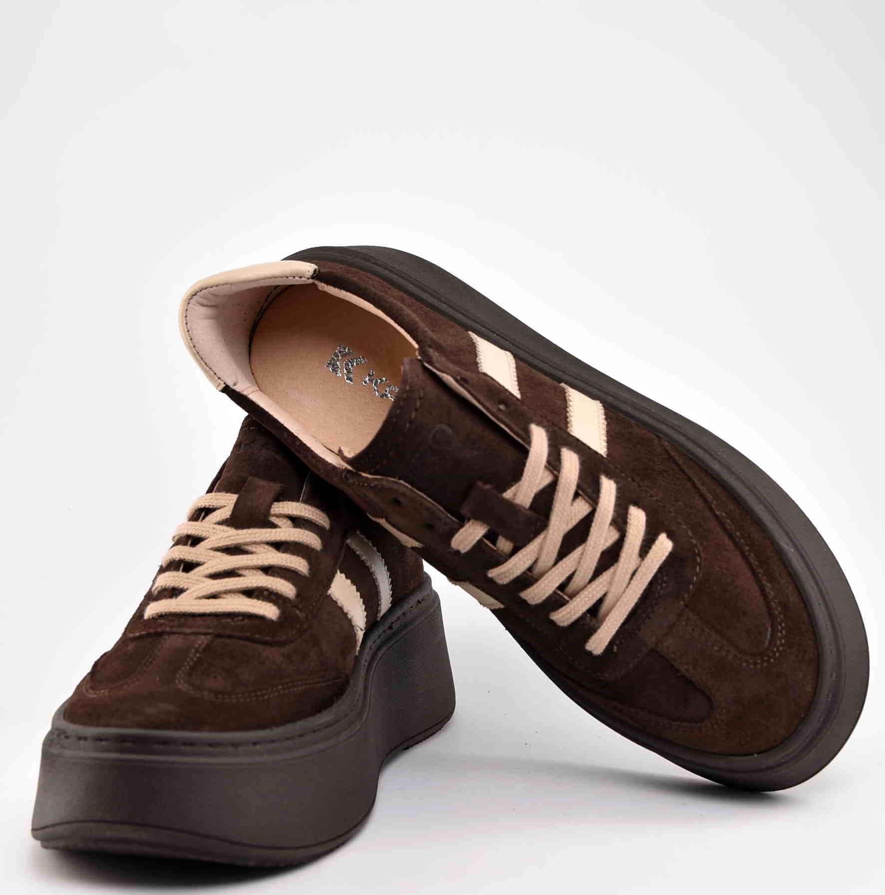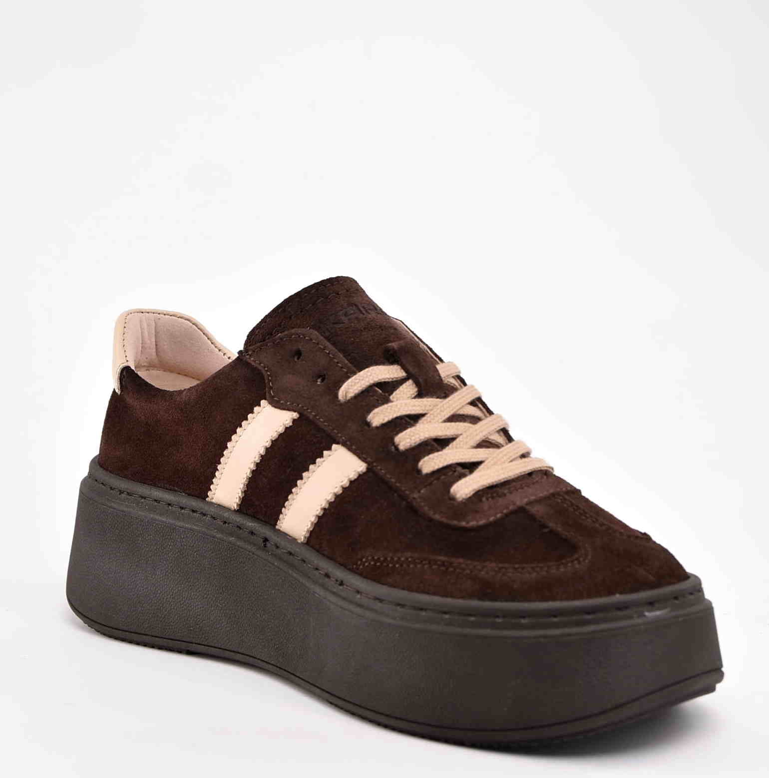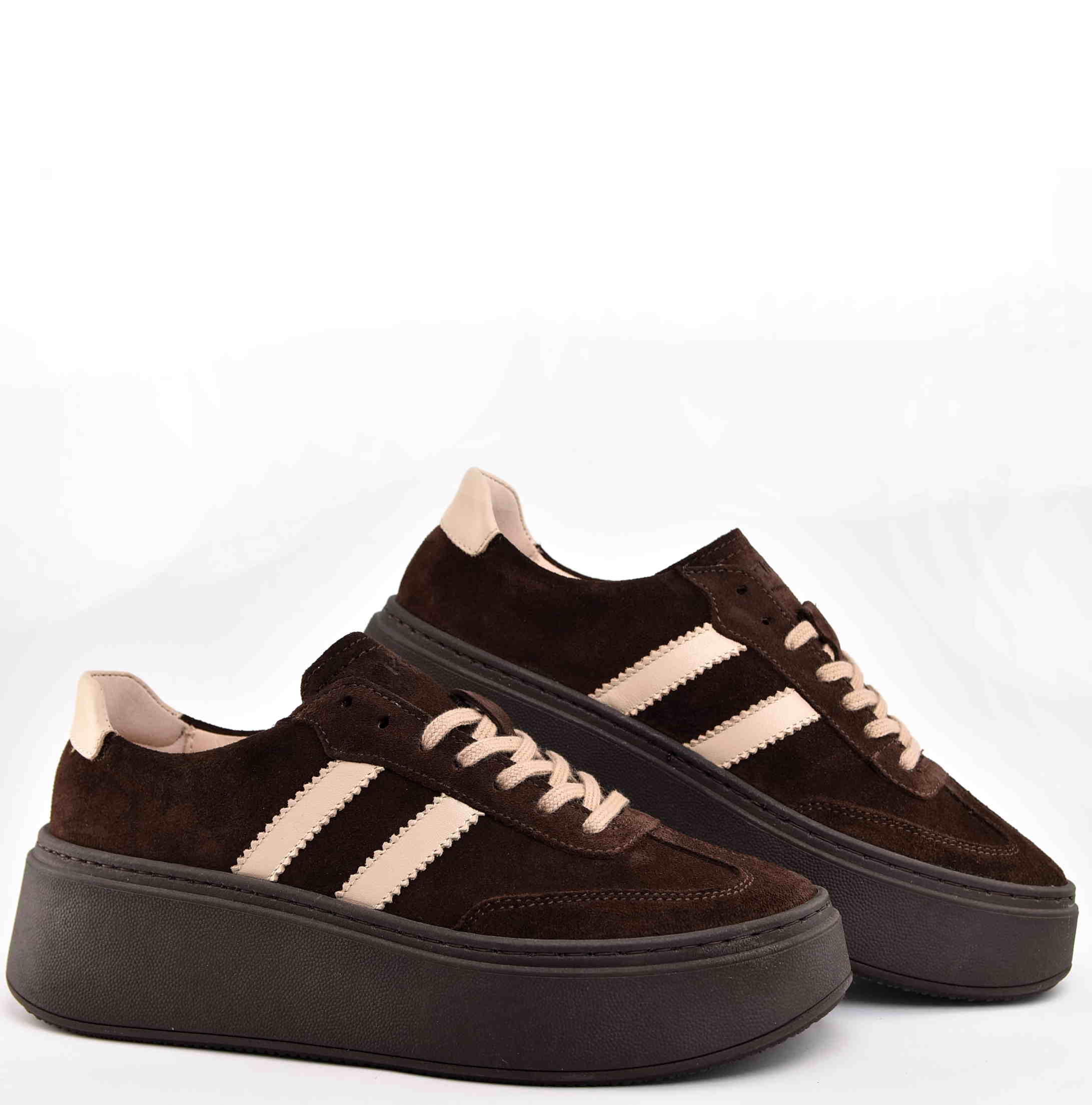 Damskie Sneakersy Na Grubej Podeszwie Naturalna Skóra Zamszowa KARO W-20674-1597-F Brąz