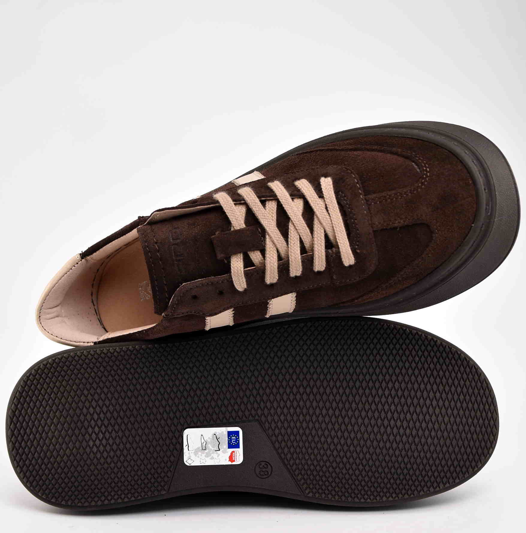 Przedstawiamy niesamowite skórzane sneakersy w najbardziej pożądanym w tym sezonie kolorze czekoladowym. Wykonane z wysokiej jakości skóry zamszowej, zapewniających komfort noszenia przez cały dzień. Gruba, solidna podeszwa w kolorze cholewki, dodaje kilku centymetrów wysokości, a jednocześnie gwarantuje doskonałą amortyzację i wygodę. Takie sneakersy to must-have w garderobie każdej miłośniczki mody, która chce być na bieżąco z najnowszymi trendami. Idealne do jeansów, sukienek czy casualowych stylizacji, dodadzą pazura każdemu lookowi. Nie może ich zabraknąć w Twojej kolekcji!