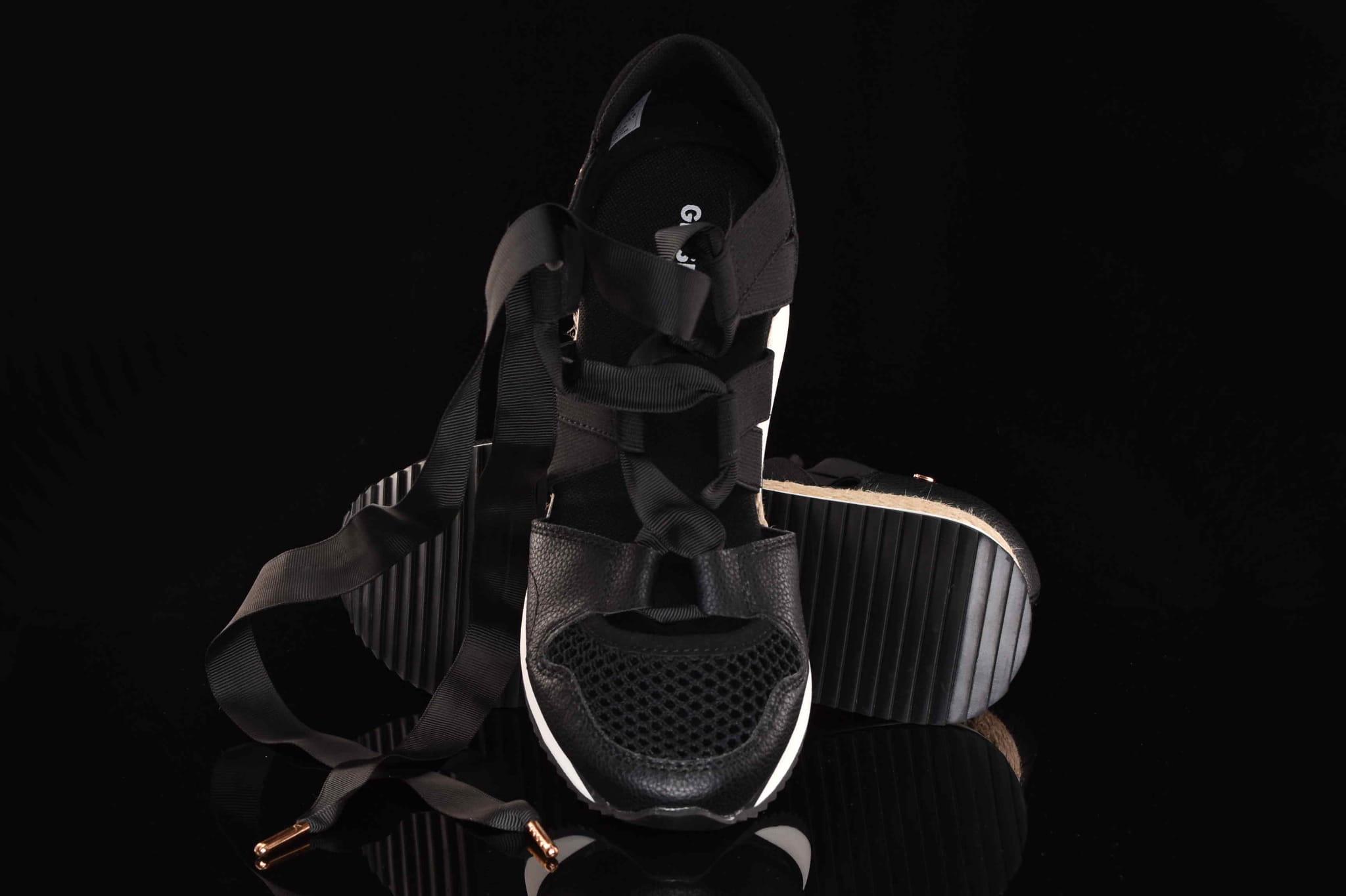 Hiszpańskie Damskie Sneakersy Sandały Wiązane Wokół Kostki GIOSEPPO 72193 Muir/Czarny