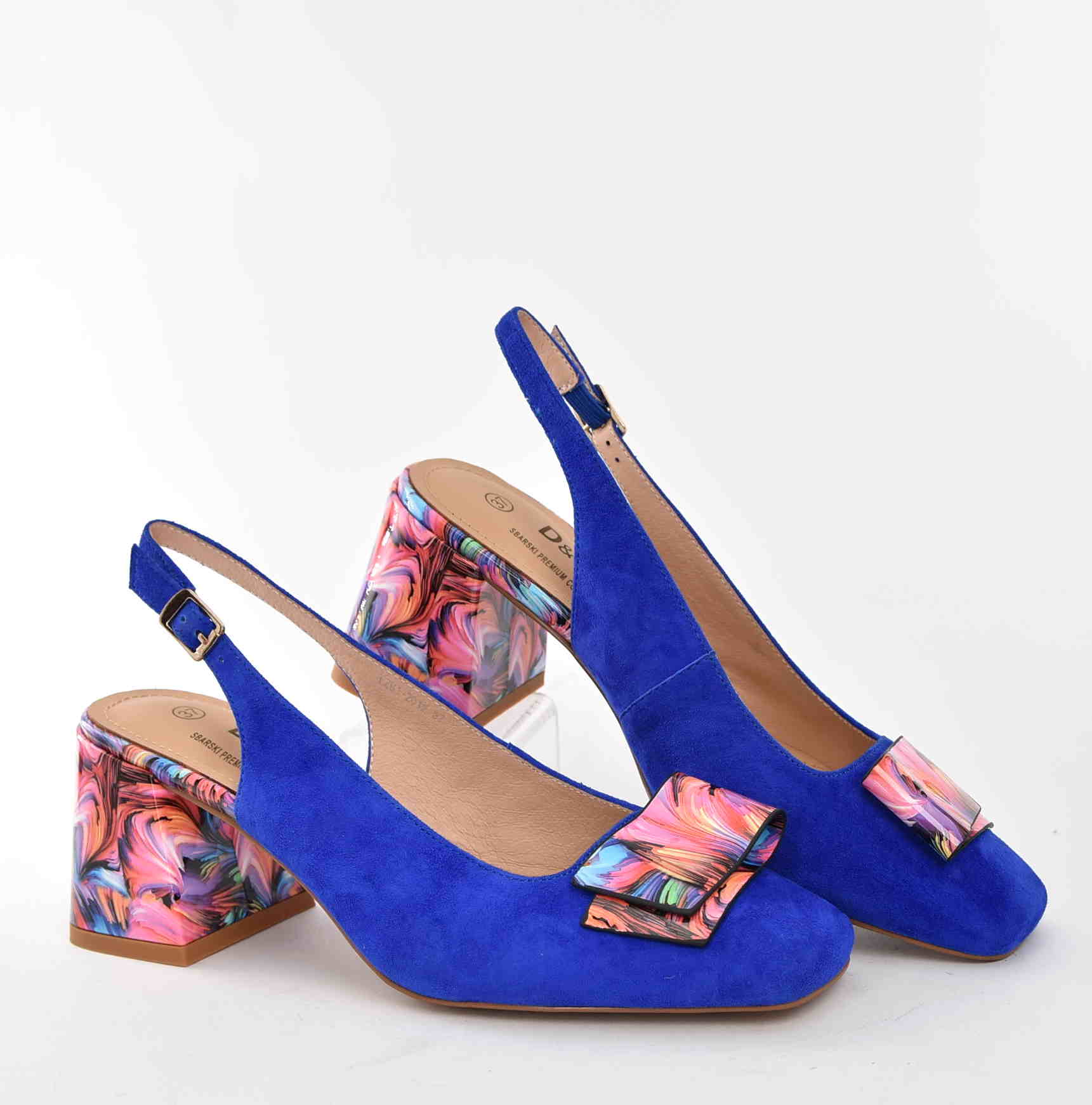 Wyjątkowym elementem modelu jest stabilny, 8-centymetrowy obcas typu klocek z artystycznym, kolorowym wzorem. Dzięki swojej konstrukcji zapewnia doskonałą stabilność oraz wygodę, dzięki czemu możesz cieszyć się komfortem przez wiele godzin – nawet podczas tańca do białego rana.